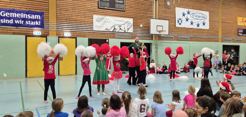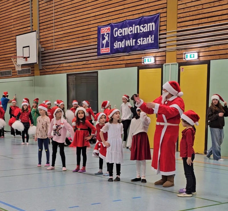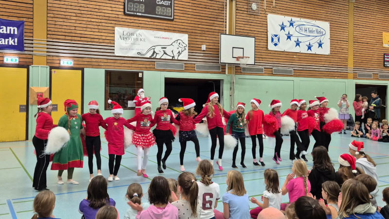 Nach dem alle Kinder sich an den Stationen austoben konnten, kam der Weihnachtsmann und machte mit den Dance Kids „Fitness für den Weihnachtsmann“. Anschließend zweigten die Älteren einen Puscheltanz mit Akrobatikelementen.